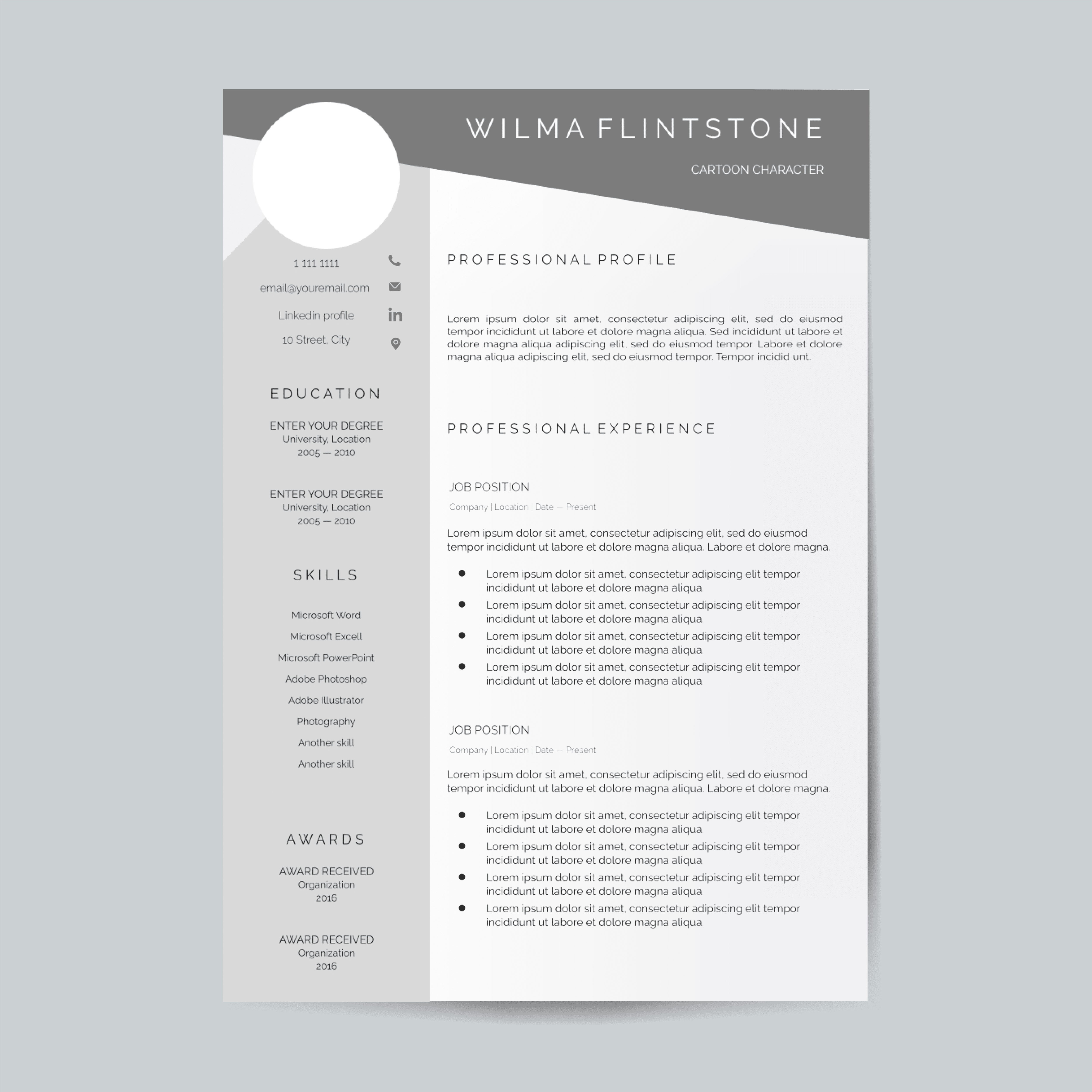 Nuestra Plantilla de CV está creada sobre lineas minimalistas, aportandó así, una imagen lista para insertarse en el mercado laboral.