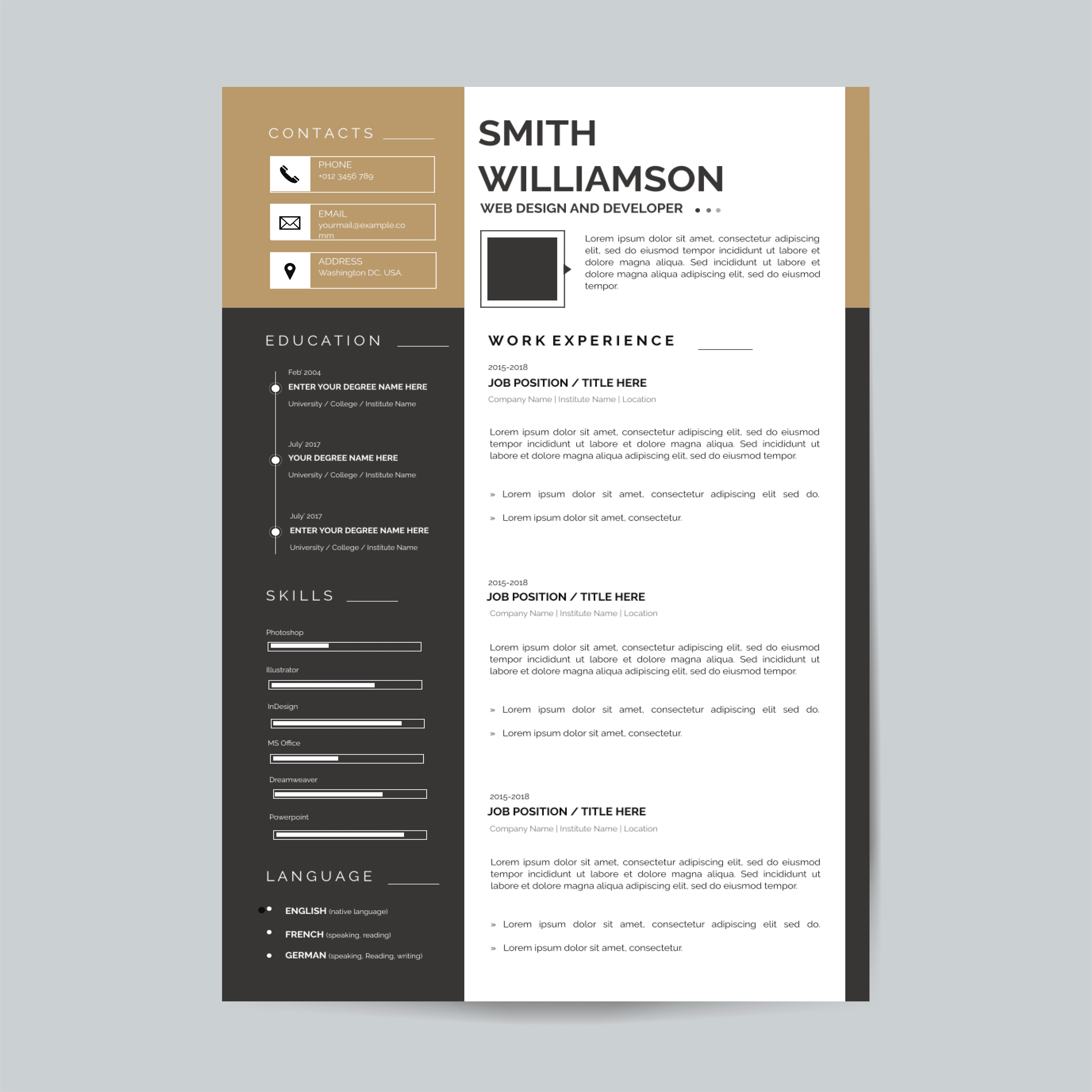 Nuestra Plantilla de CV está creada sobre lineas minimalistas, aportandó así, una imagen lista para insertarse en el mercado laboral.